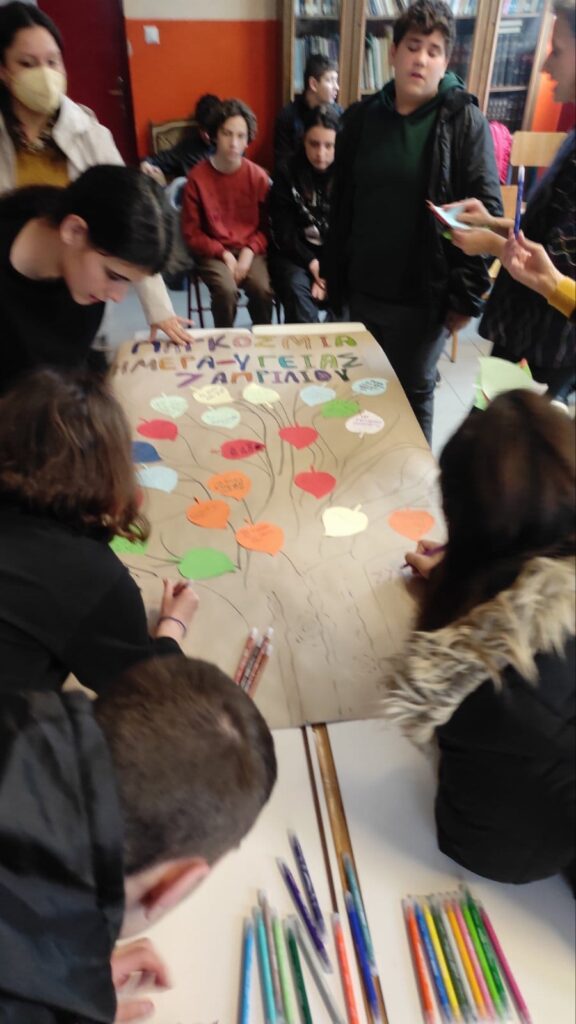 Τέλος τα παιδιά δημιούργησαν μια γιγαντοαφίσα στην οποία αποτύπωσαν ευχές για καλή υγεία.